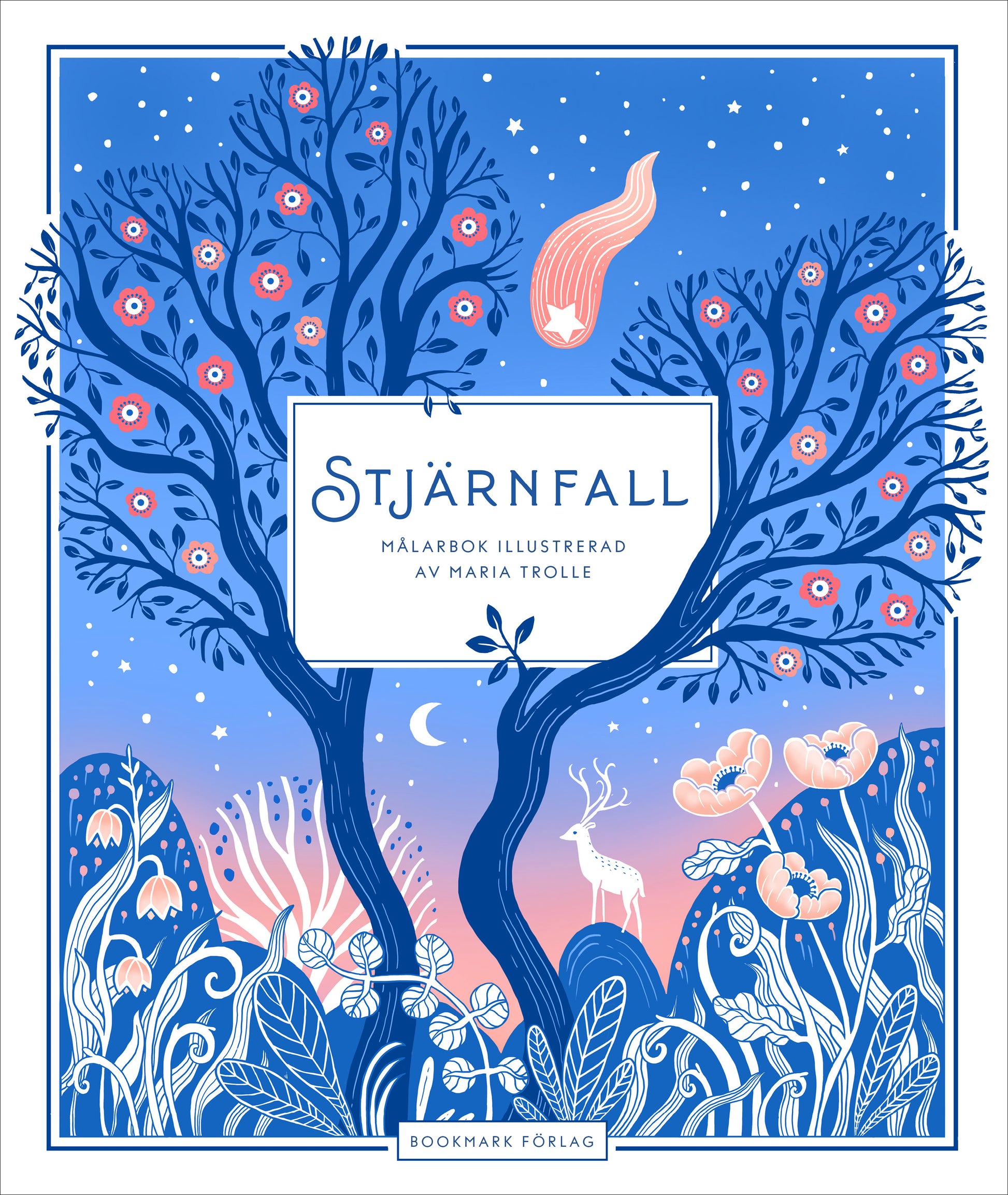 Här rymmer varje skrymsle gåtfulla varelser, magisk natur, skimrande gläntor och lummiga skogar. Ovan vilar ett öppet och lekfullt himlavalv i praktfull glans med mäktiga stjärnfall. Ta en rofylld stund och låt fantasi och färger fylla det storslagna växtriket och alla de magiska figurer och varelser som befolkar Maria Trolles värld.